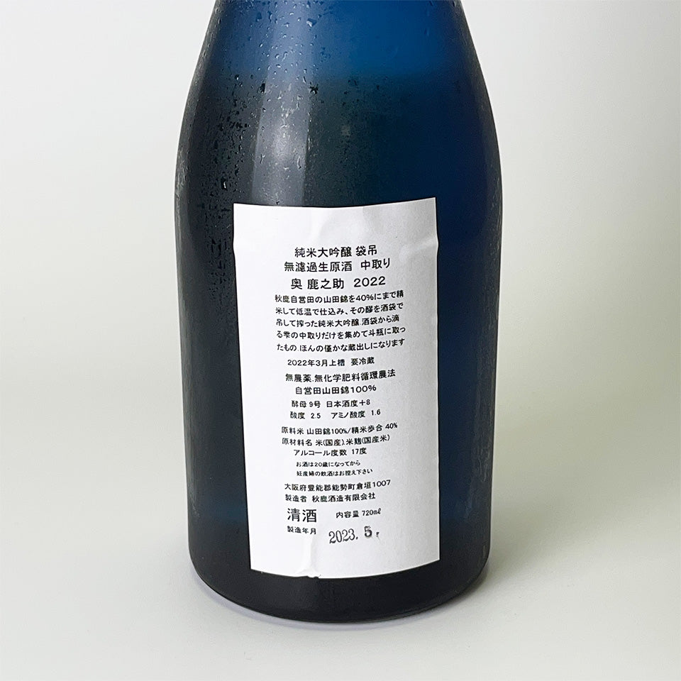 Akishika Oku Shikanosuke 2022 Junmai Daiginjo, Fukuro-tsuri Nakadori, Unfiltered Nama Genshu
