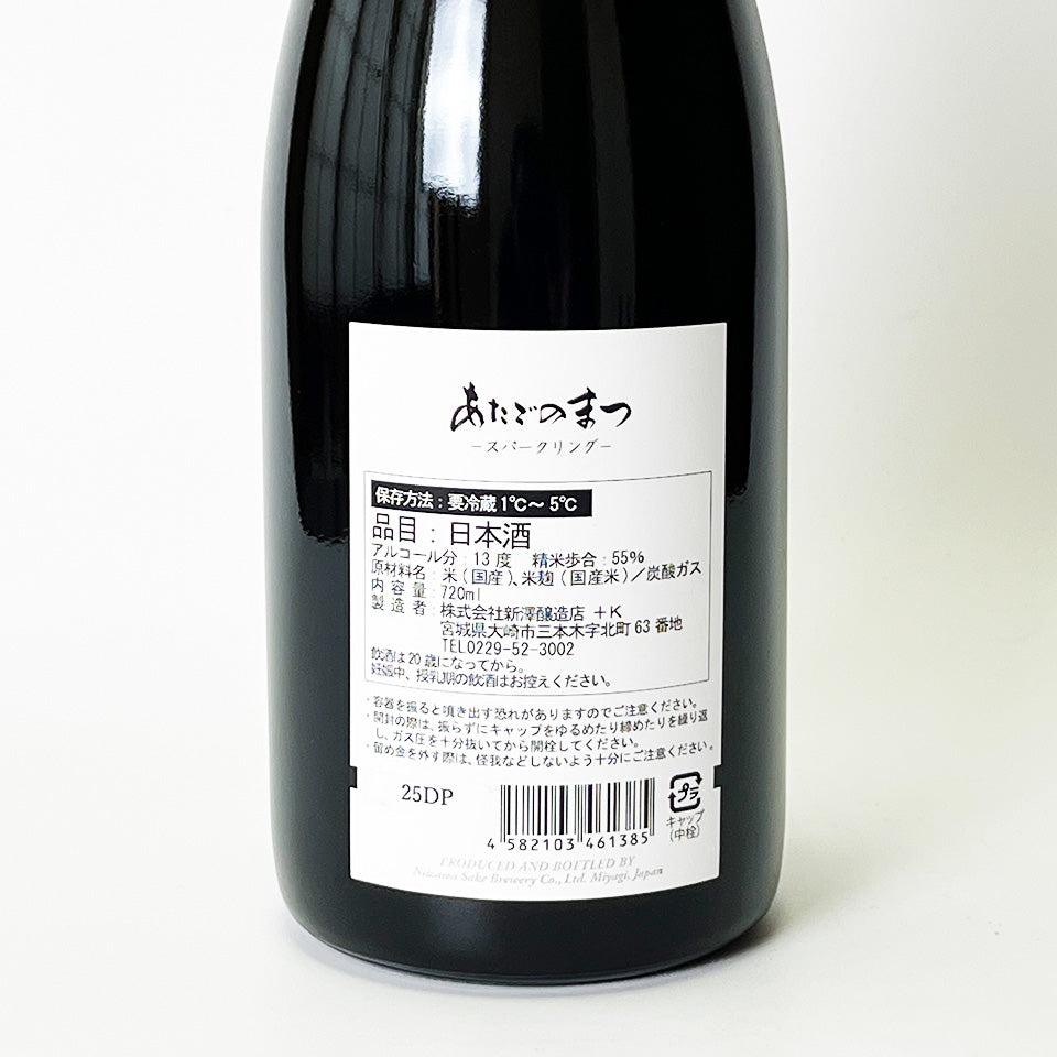 Specific name, etc.: Sparkling / ALC (%): 13.0 / Main ingredient: / Rice polishing ratio (%): 55 / Yeast: / Sake meter value: -15.0 / Acidity: 1.4 / Amino acid content: 1.2 / Brewing year: