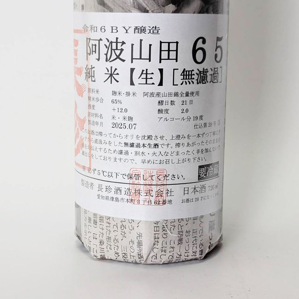 Specific name, etc.: Junmai / ALC (%): 19.0 / Main ingredient: Yamada Nishiki / Rice polishing ratio (%): 65 / Yeast: / Sake meter value: / Acidity: 2.0 / Amino acid content: / Brewing year: 2024
