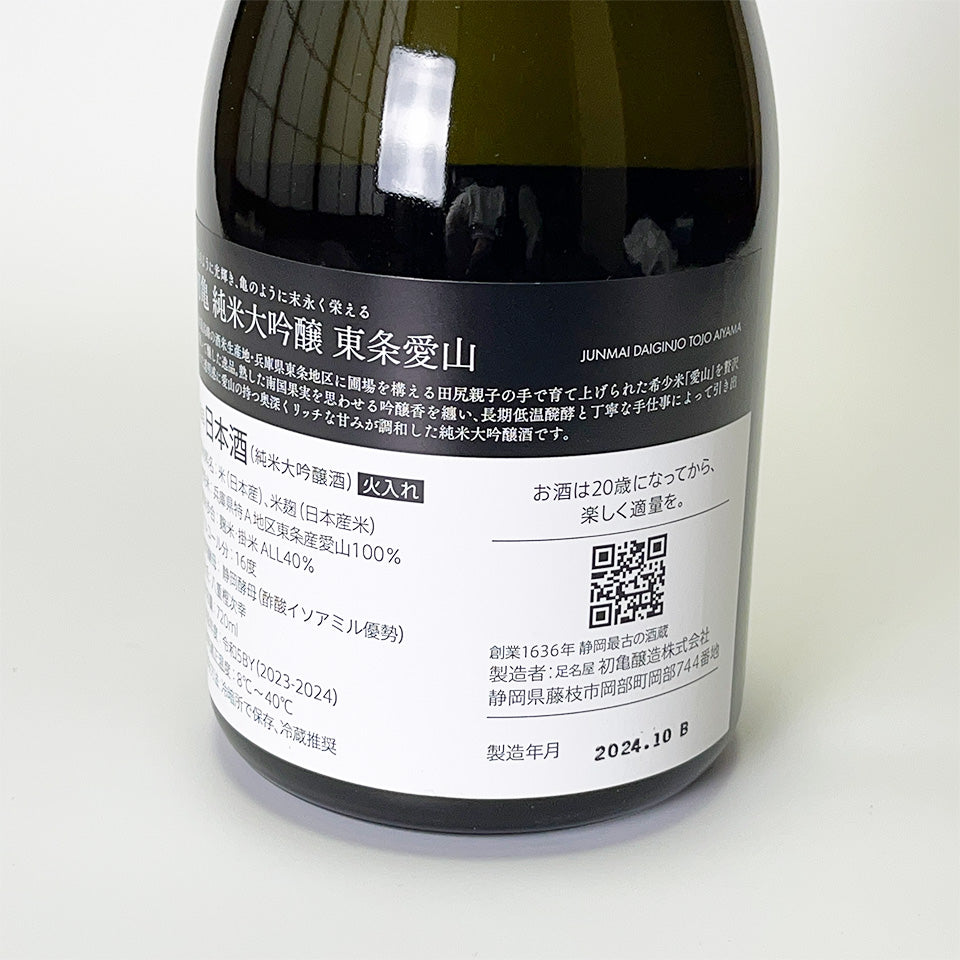 This top-quality Junmai Daiginjo sake is made using the highest quality Aiyama rice from the Tojo region of Hyogo Prefecture, a region renowned for its sake rice. Polished to 40%, it is brewed with Shizuoka yeast and has a gentle, elegant ginjo aroma and the distinct sweetness of Aiyama rice, while also having a clean finish.