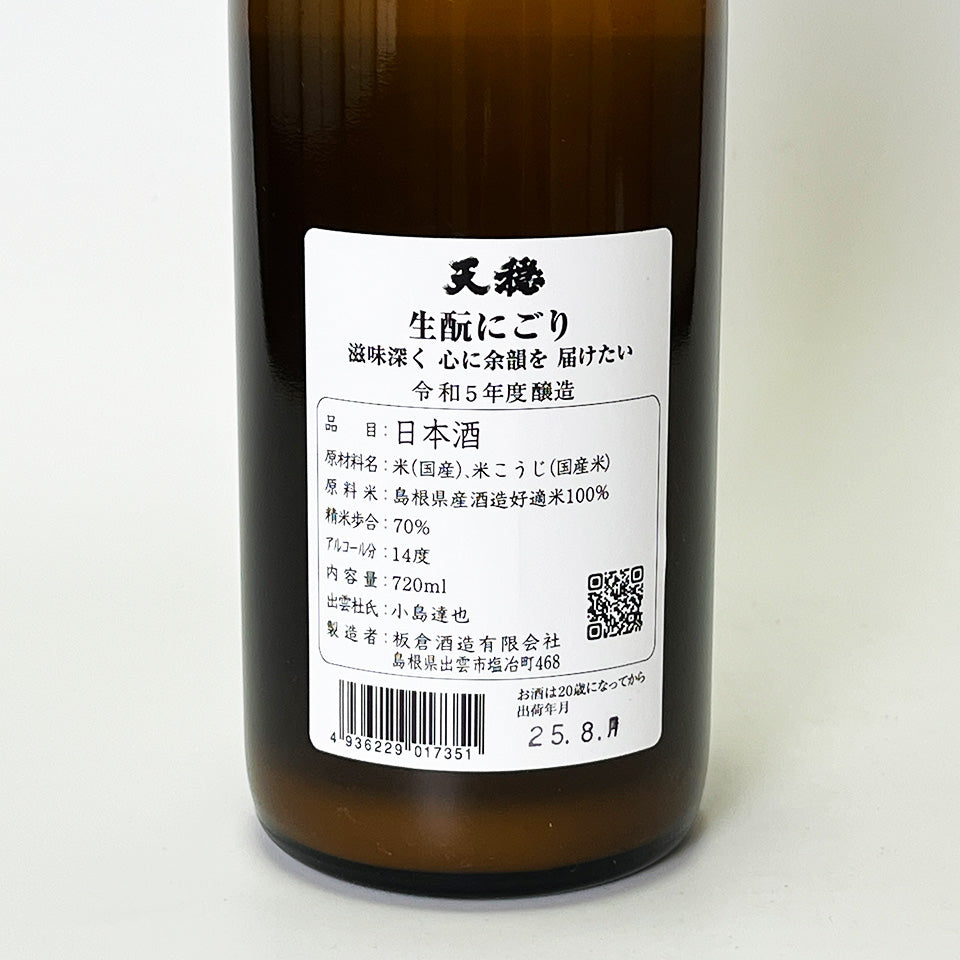 This is a pure rice nigori sake made with 70% polished Shimane rice and brewed with kimoto, and is unfiltered and pasteurized once. Unlike the previous year's version, the Reiwa 5 brewing year (R5BY) is a pasteurized version of the "Red Label" released in the spring of the same year, making it the first Red Label Kimoto sake in a long time.