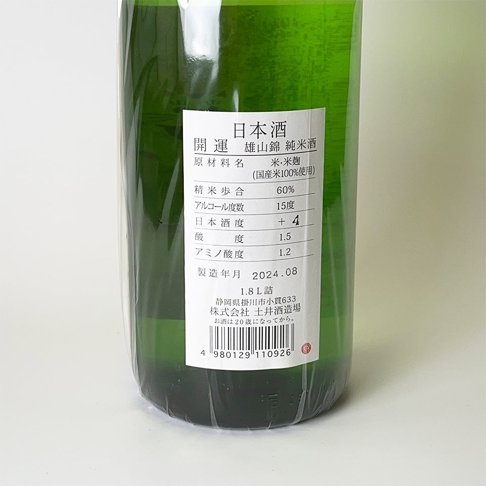 開運 純米 山田錦 無濾過 招き猫(令和6醸造年度)