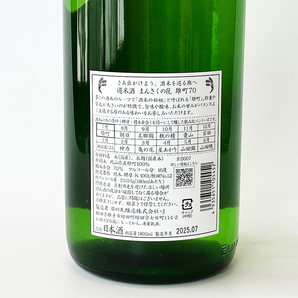 Mansaku no Hana Junmaishu, Omachi 70, 1st Pasteurization, Unpasteurized (Reiwa 6 Brewing Year)