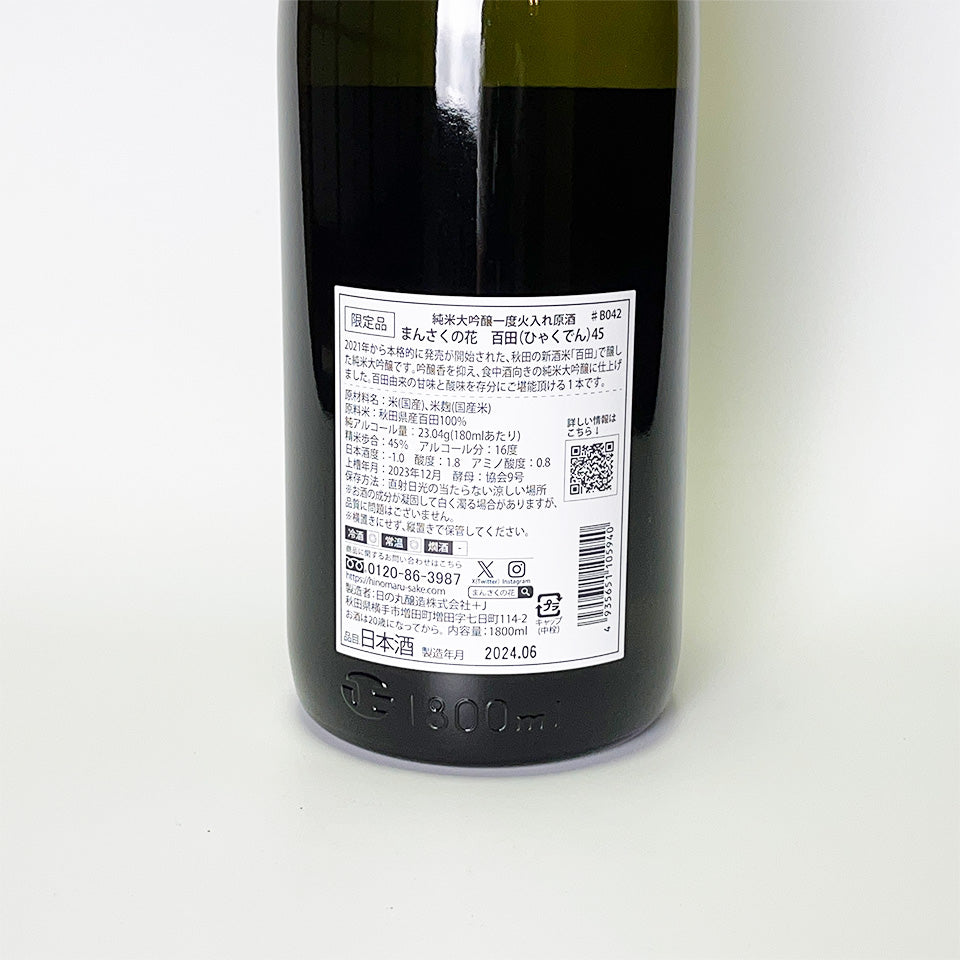 Mansaku no Hana Junmai Daiginjo Hyakuden 45% Unpasteurized, Pasteurized Once