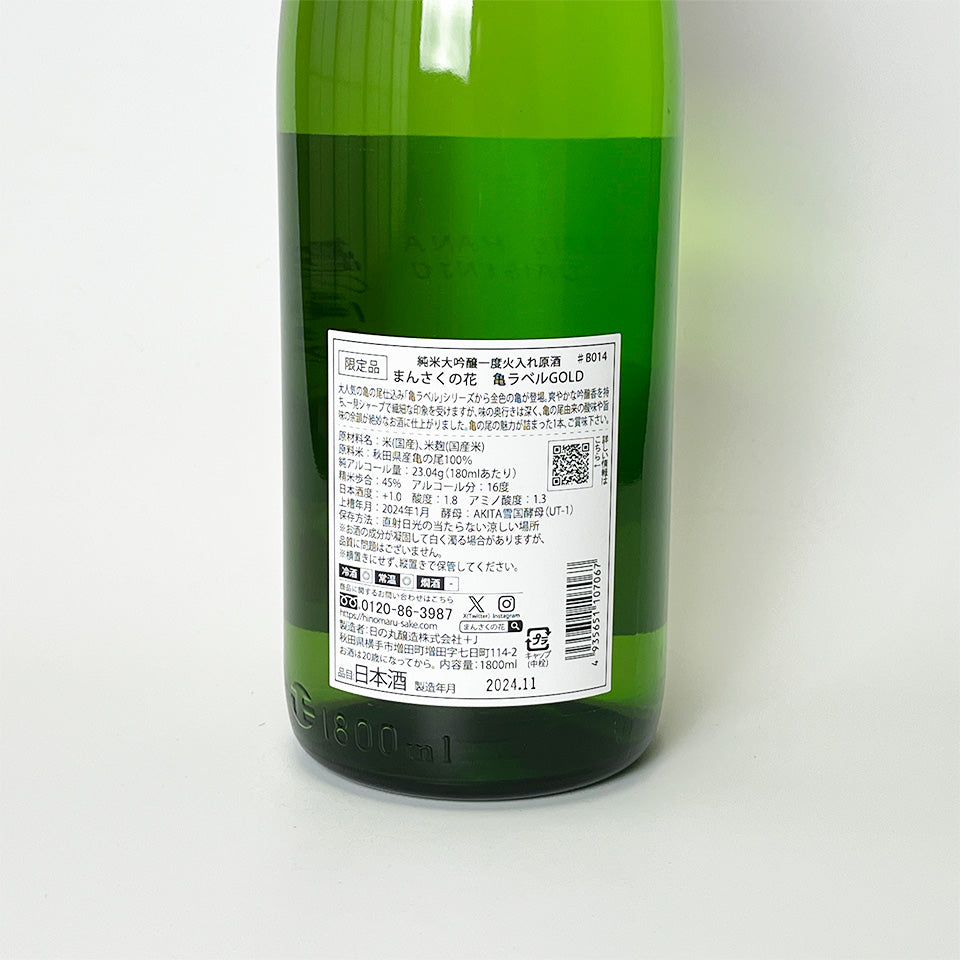 Mansaku no Hana Junmai Daiginjo Kame Label GOLD Unpasteurized, Pasteurized Once
