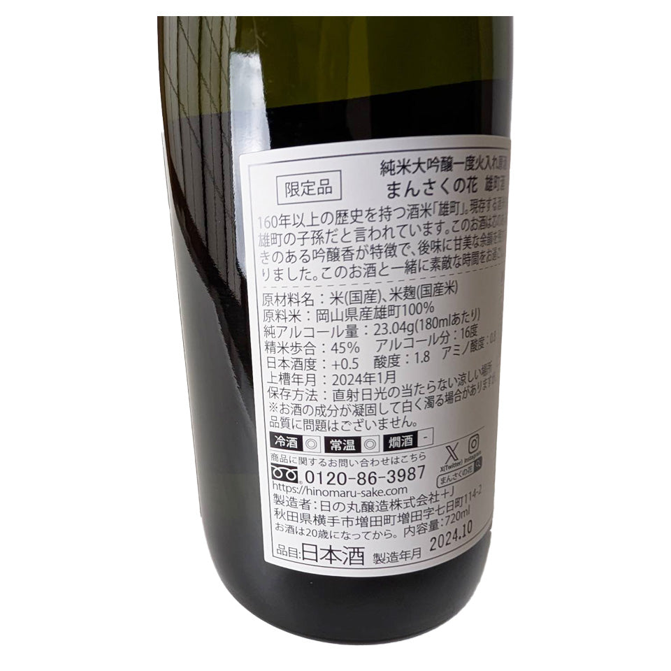 Mansaku no Hana Junmai Daiginjo Omachi Sake, unpasteurized, pasteurized once