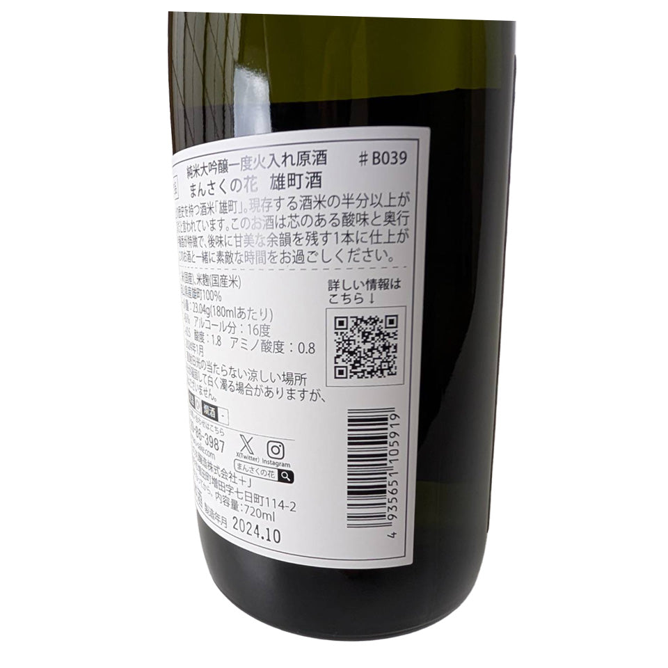 Mansaku no Hana Junmai Daiginjo Omachi Sake Nama Genshu (brewed in 2024)
