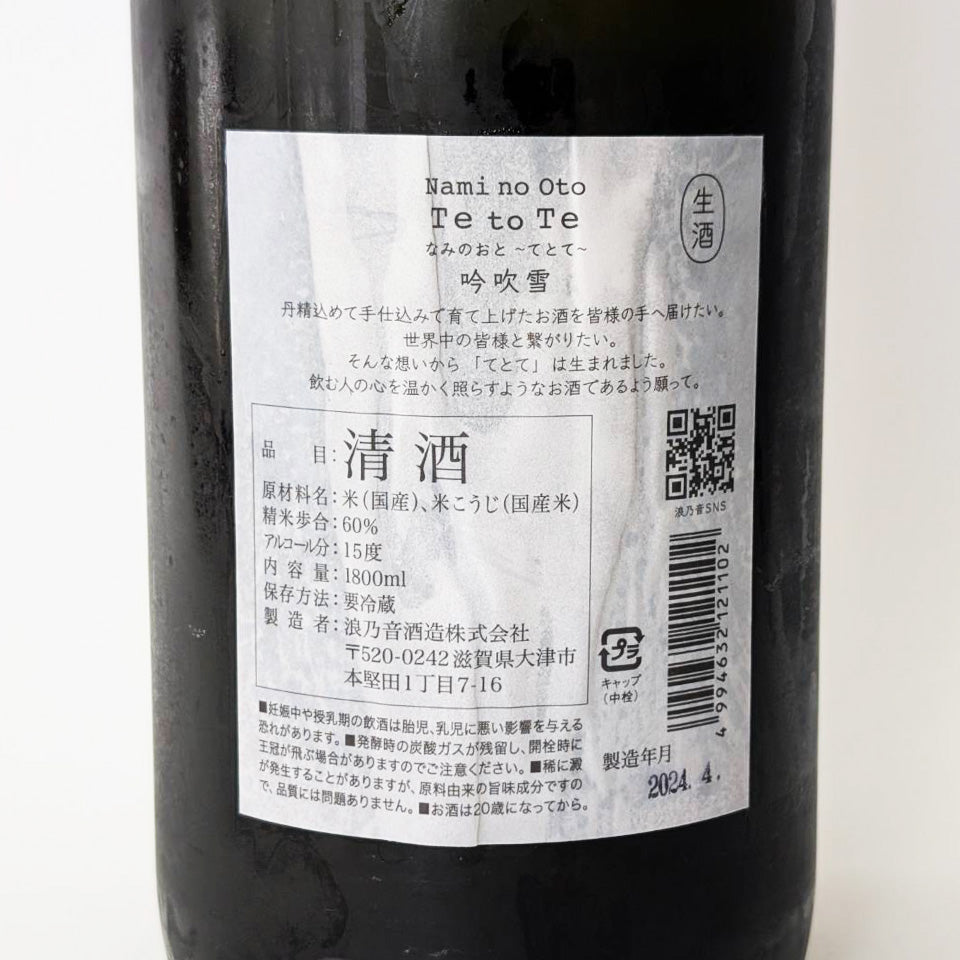 浪の音 Nami no Oto TE to TE(なみのおと てとて)純米吟醸 吟吹雪 火入れ