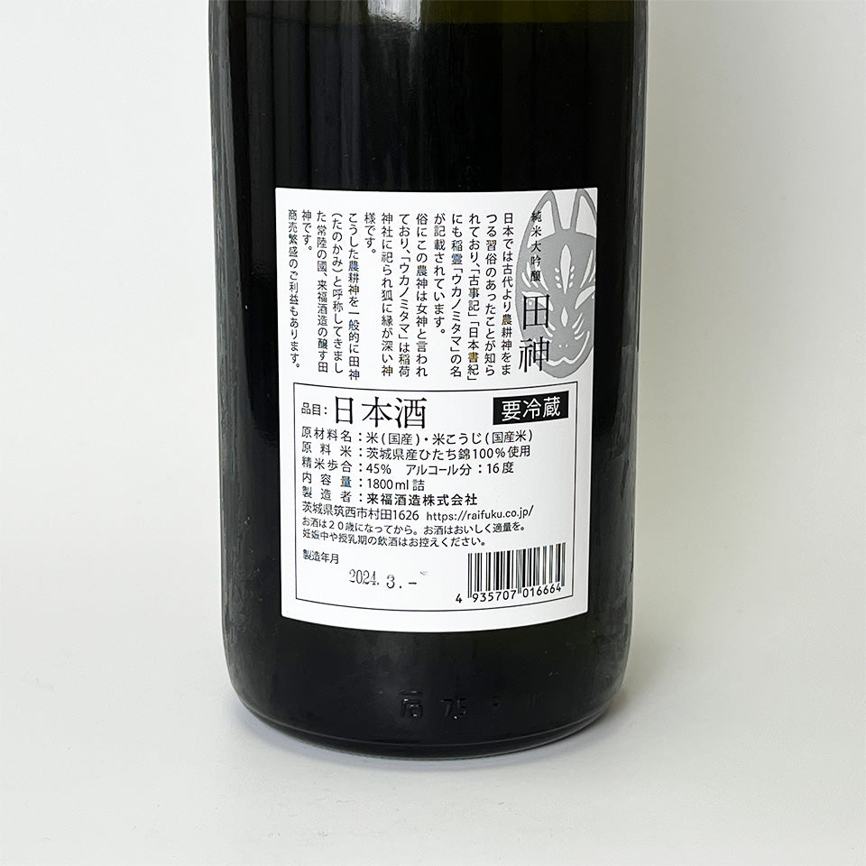 Specific name, etc.: Junmai Daiginjo / ALC (%): 16.0 / Main ingredient: Hitachinishiki / Rice polishing ratio (%): 45 / Yeast: / Sake meter value: / Acidity: / Amino acid content: / Brewing year: 2024