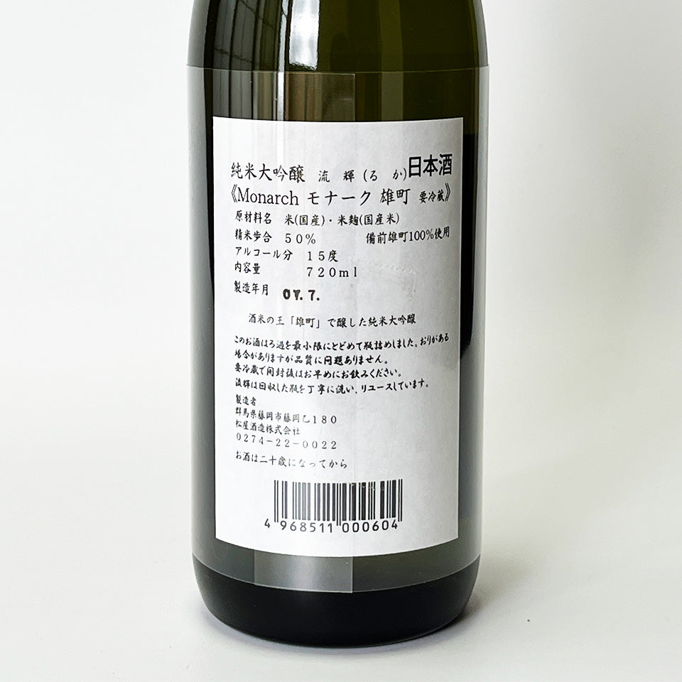 The product name Monarch comes from the monarch butterfly, which means emperor, as Omachi is said to be the king of sake rice.
