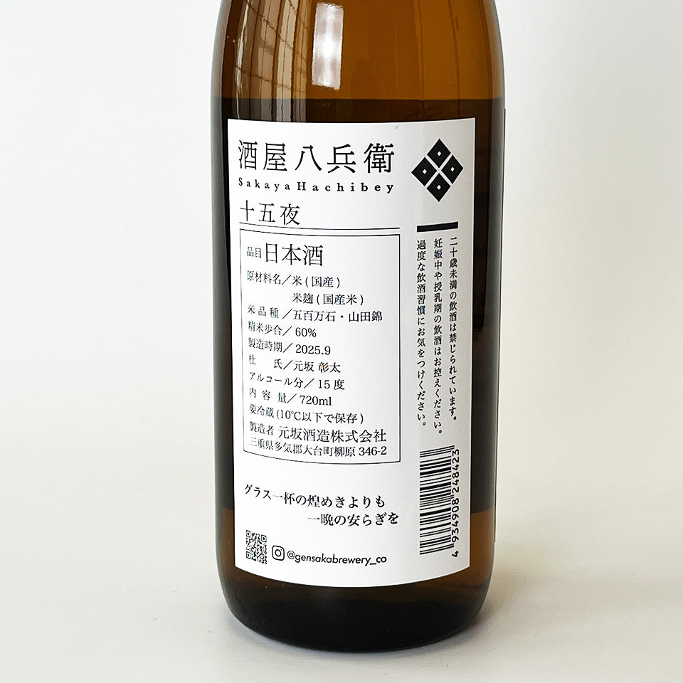 This Junmai sake is named after the "Jugoya" (the 15th night of the 8th month of the lunar calendar), a festival celebrating the full moon on the 15th day of the 8th month of the lunar calendar, also known as the "Mid-Autumn Moon." It is made with Yamada Nishiki rice for the koji rice and Gohyakumangoku rice for the rice, and is brewed with 60% polished rice (pasteurized once). It is an "Autumn-Agari" sake that has been aged over the summer. As autumn deepens, the sake matures and develops a rich, savory flavor.