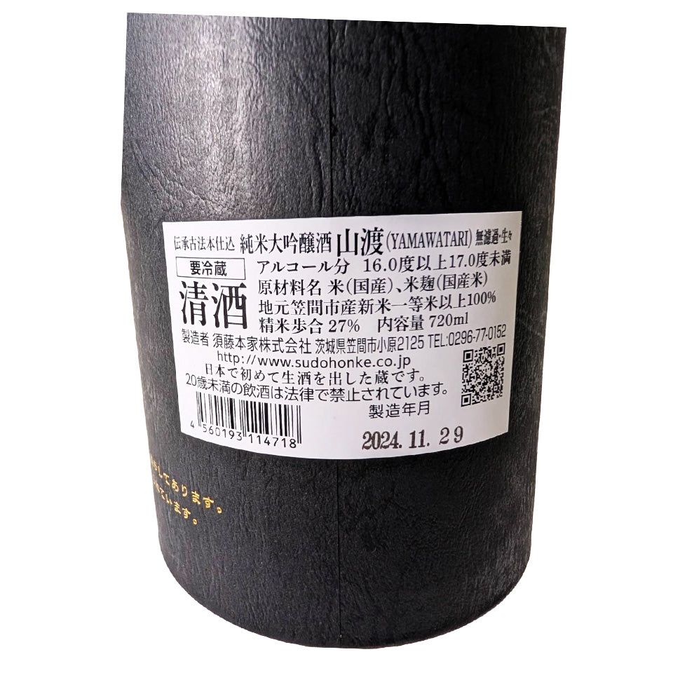 Sato no Homare, Kakunko, Yamawatari Junmai Daiginjo, brewed using traditional methods, unfiltered and unpasteurized
