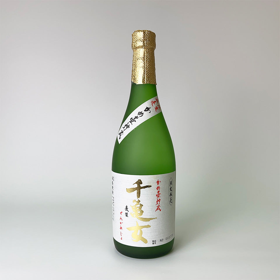 "Senkameme" is the signature barley shochu from the handmade brewery "Shibushi Wooden Barrel Distillery Senkokugura." It is stored in earthenware jars and blended with aged sake. Enjoy the aroma of raisins and caramel, and the fruity, soft taste.