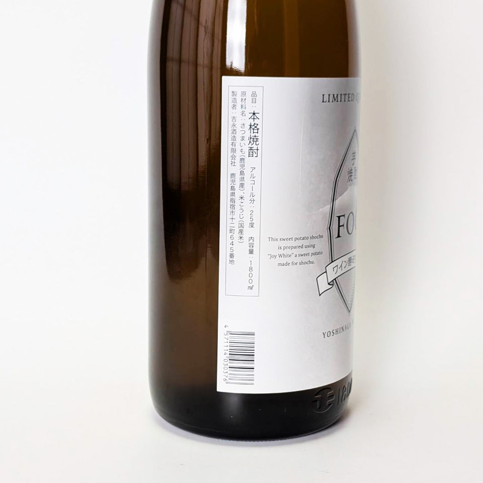 This limited edition shochu was released to commemorate the 120th anniversary of Yoshinaga Shuzo's founding. It's a sweet potato shochu made at atmospheric pressure using a unique method that has been passed down for over 100 years: a turtle-bottle brewing process that combines wine yeast, Joy White (sweet potato), and black koji type G. The rough filtration process gives it a flavor that combines the fruity notes of western liquor with the full-bodied taste of sweet potato.