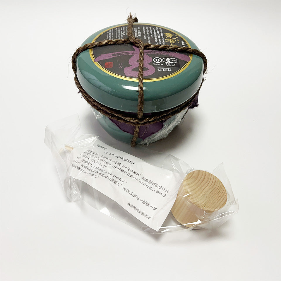 One of the Tsutsumi Shizuku series, "Gen" means "black" or "profound," and as its name suggests, it is a blend of three types of undiluted sake, primarily made with black koji, resulting in a deep flavor. The ingredients are purple sweet potato and red sweet potato, which are organically grown without pesticides at a subsidiary farm, and the koji rice is made exclusively from organic duck rice grown at a subsidiary farm.