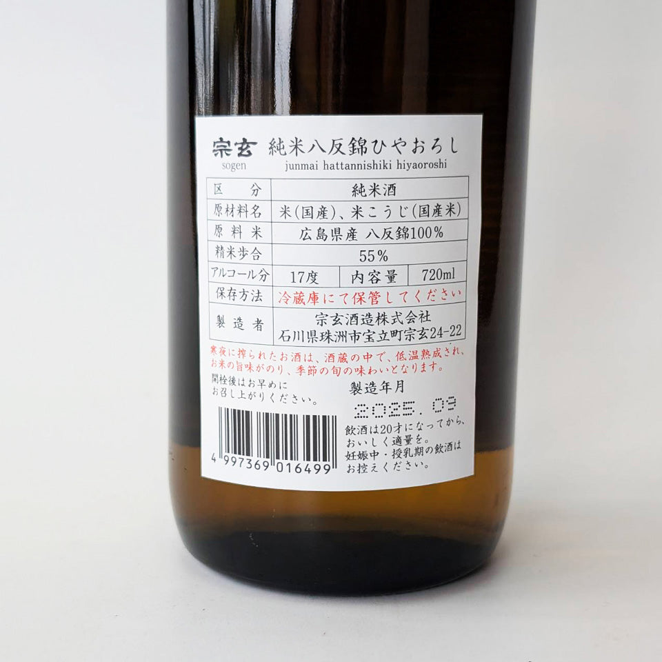 宗玄 純米 八反錦 ひやおろし 原酒(令和6醸造年度)