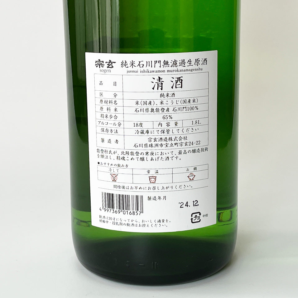 Sogen Junmai Ishikawamon 65% Unfiltered Nama Genshu (brewed in 2024)