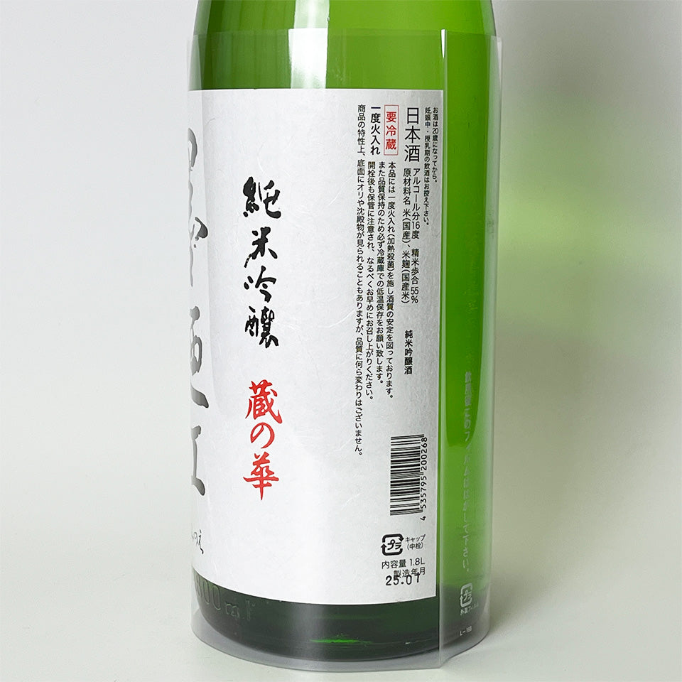 Specific name, etc.: Junmai Ginjo / ALC (%): 16.0 / Main ingredient: Flower of the Storehouse / Rice polishing ratio (%): 55 / Yeast: Miyagi Yeast / Sake meter value: 1.0 / Acidity: 1.7 / Amino acid content: / Brewing year: 2024