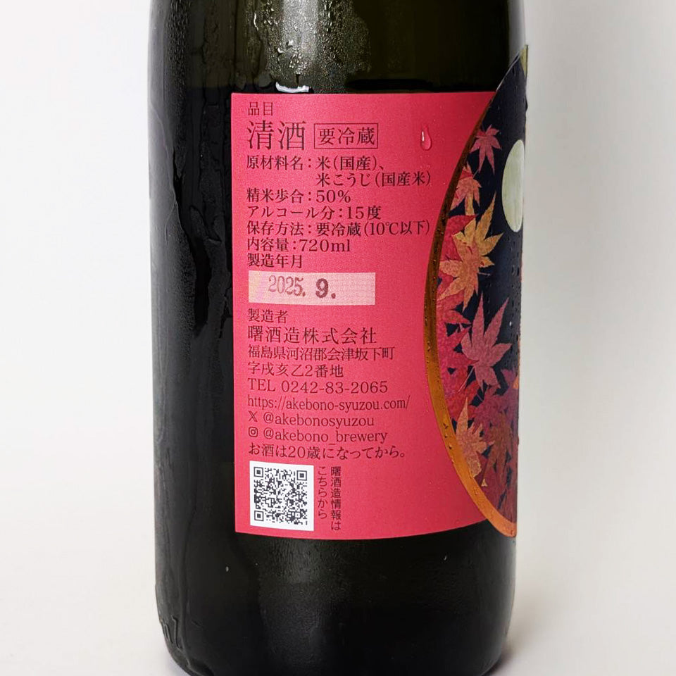 The contents have been renewed for the 2024 brewing year. This is a Junmai Ginjo unpasteurized sake made from 50% polished Miyamanishiki rice and brewed with a blend of three types of yeast (Kyokai No. 901, Utsukushima Yume Yeast F701, and malic acid-producing yeast). This is an autumn-aged Junmai Ginjo (a honnama sake that has never been pasteurized) with the theme of "maturity" in keeping with the autumn season.