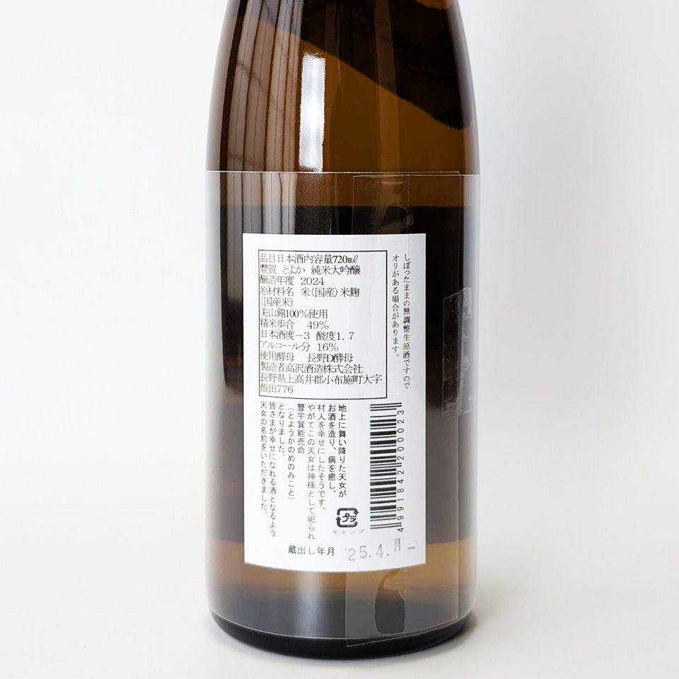 Toyoka Junmai Daiginjo, Miyamanishiki 49%, Nagano D Yeast, Nakadori, Unfiltered, Nama Genshu, Black Label (Reiwa 6 brewing year)