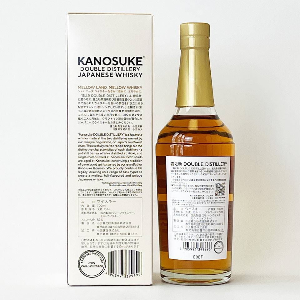 "Kanosuke DOUBLE DISTILLERY" is a Japanese whiskey that is made by carefully selecting new casks from the casks that contain the raw liquor that makes up two of our standard products: "Single Malt Kanosuke," produced at the Kanosuke Distillery, which makes use of three stills, and "Kanosuke HIOKI POT STILL," produced at the Hioki Distillery using a unique method and pot distillation techniques.The casks are then carefully blended to create an exquisite combination that brings out the unique personalities of the two.