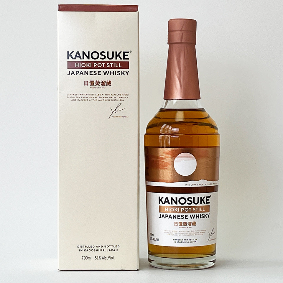 A new Japanese-style pot still whiskey. Barley and malt are used as raw materials for the mashing and fermentation process at the Hioki Distillery, and the malt is carefully brewed in a pot still. The malt is then aged in new American white oak barrels and bourbon barrels at the Kanosuke Distillery's maturation warehouse.