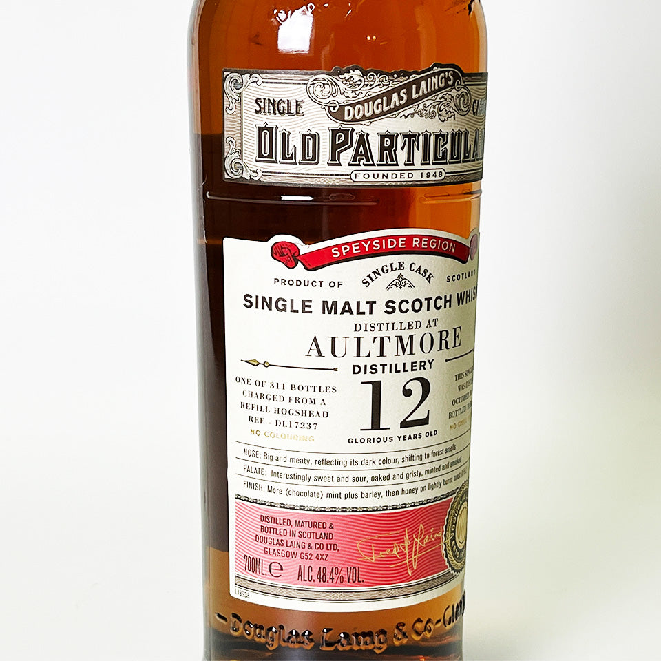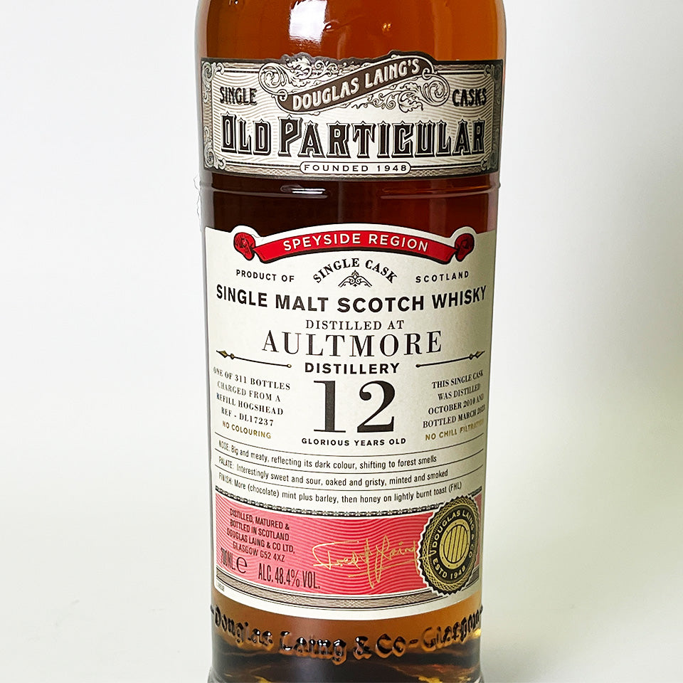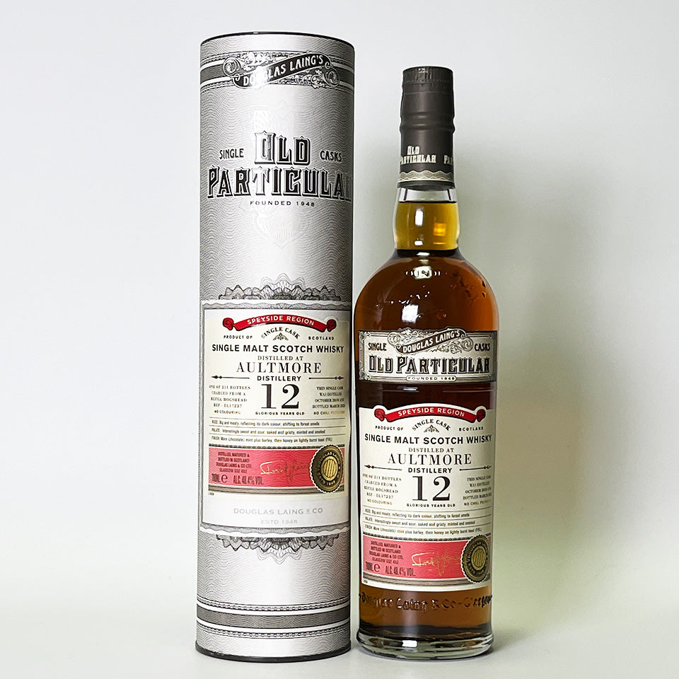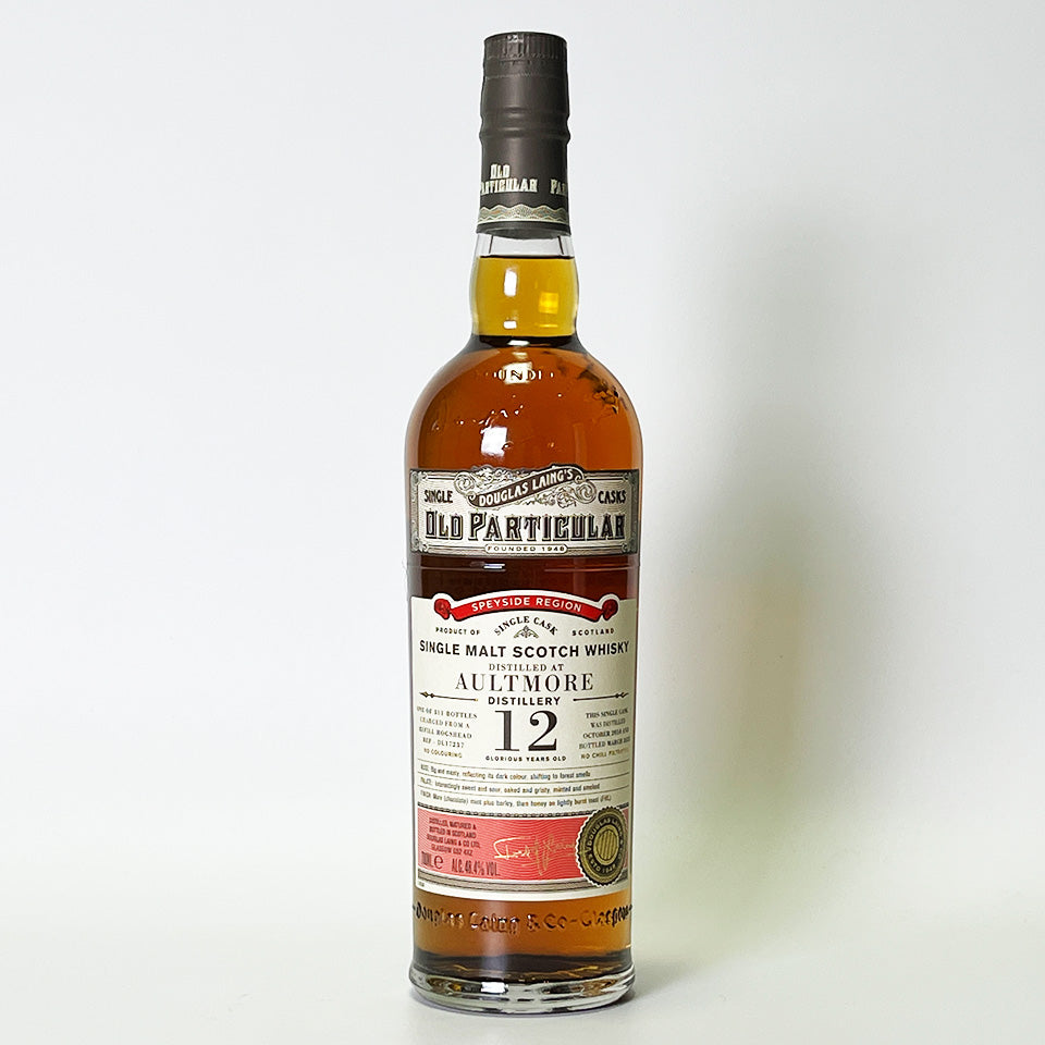 The "Old Particular" series is a carefully selected, high-quality series released by major bottler Douglas Laing. Founded in 1896, Aultmore Distillery is the key malt for Johnnie Walker 12 Year Old and Dewar's.