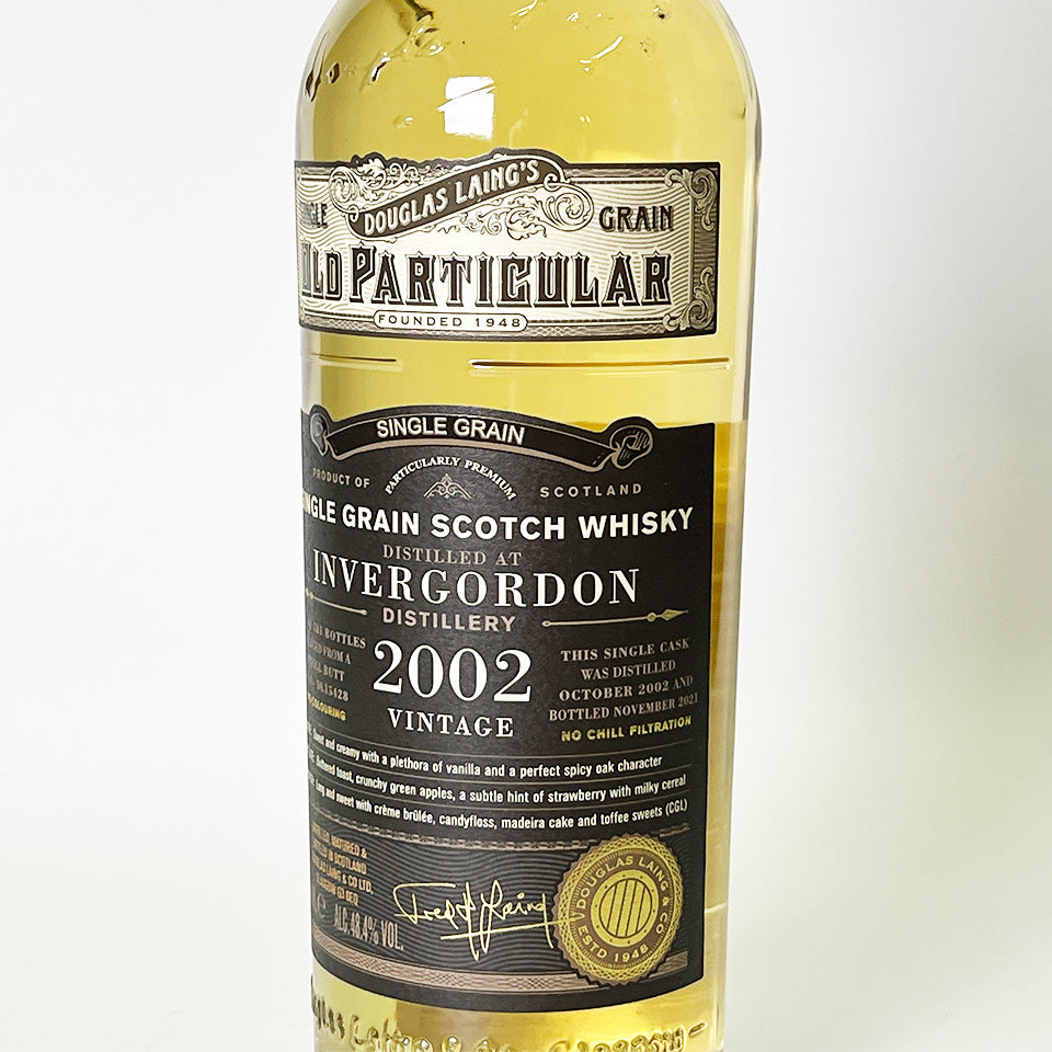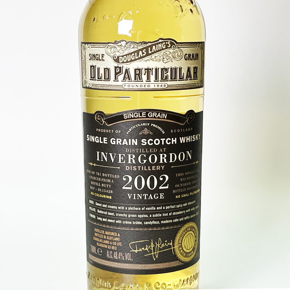 The "Old Particular" series is a carefully selected, high-quality series released by major bottler Douglas Laing. Founded in 1960, Invergordon Distillery is the only grain distillery in the Highlands and is the source of Whyte & Mackay's whiskey.