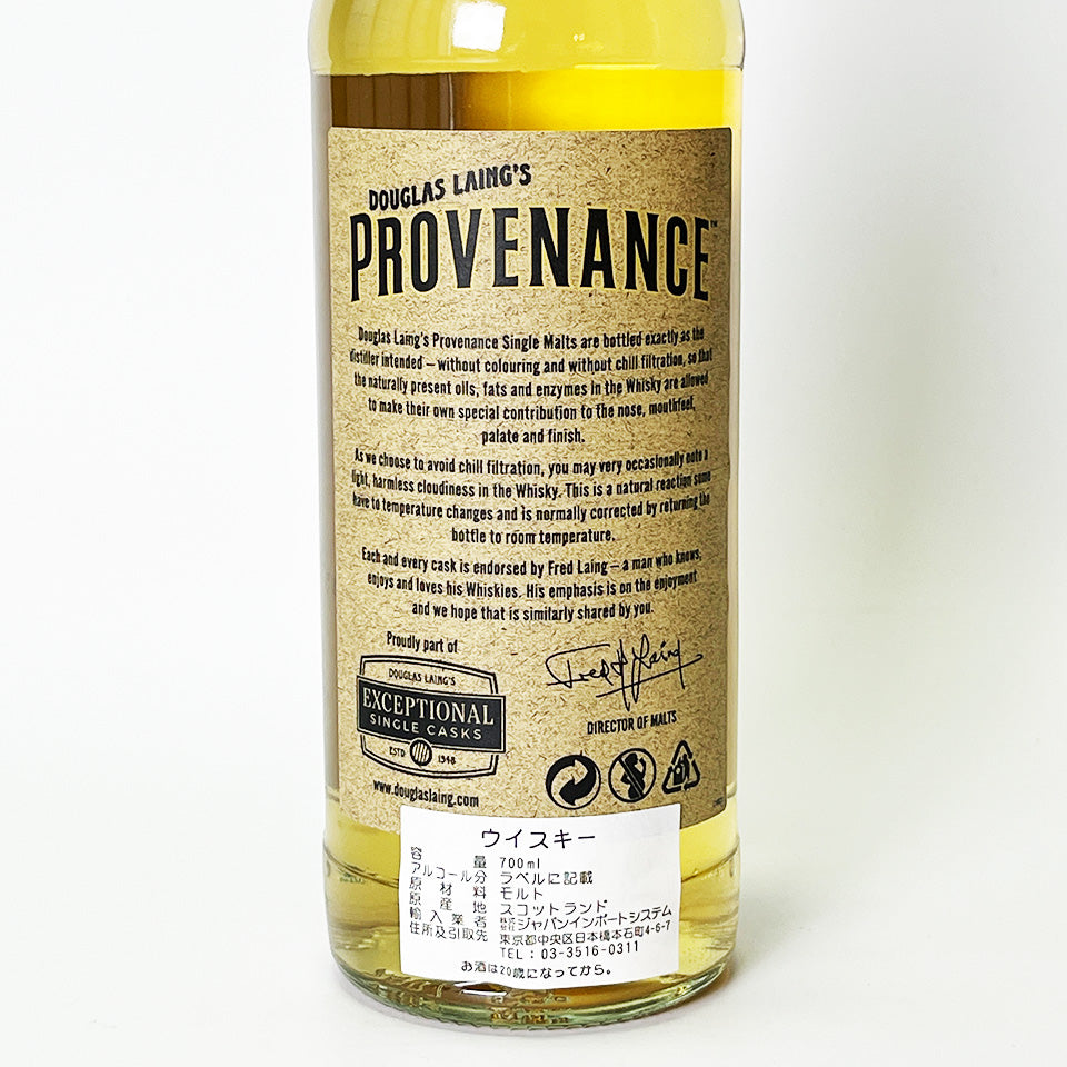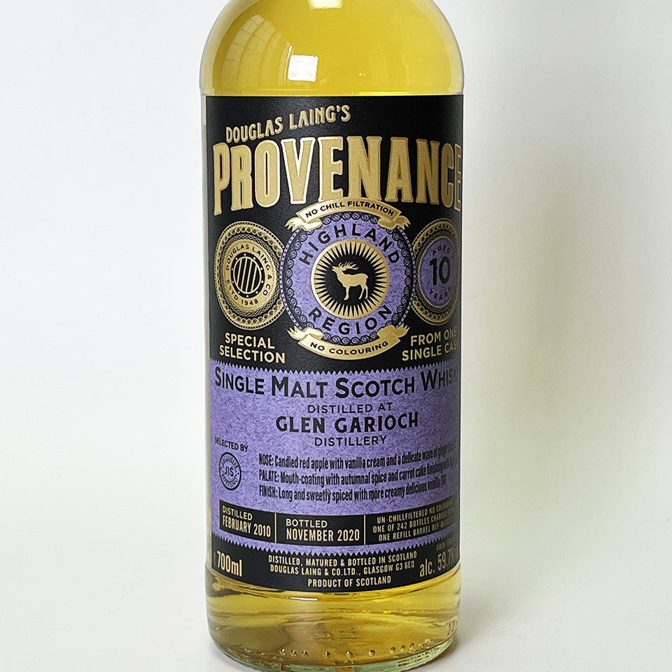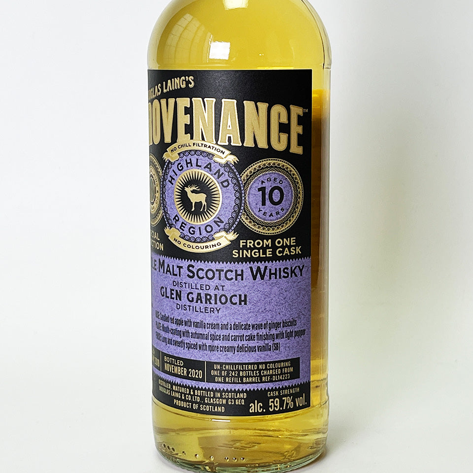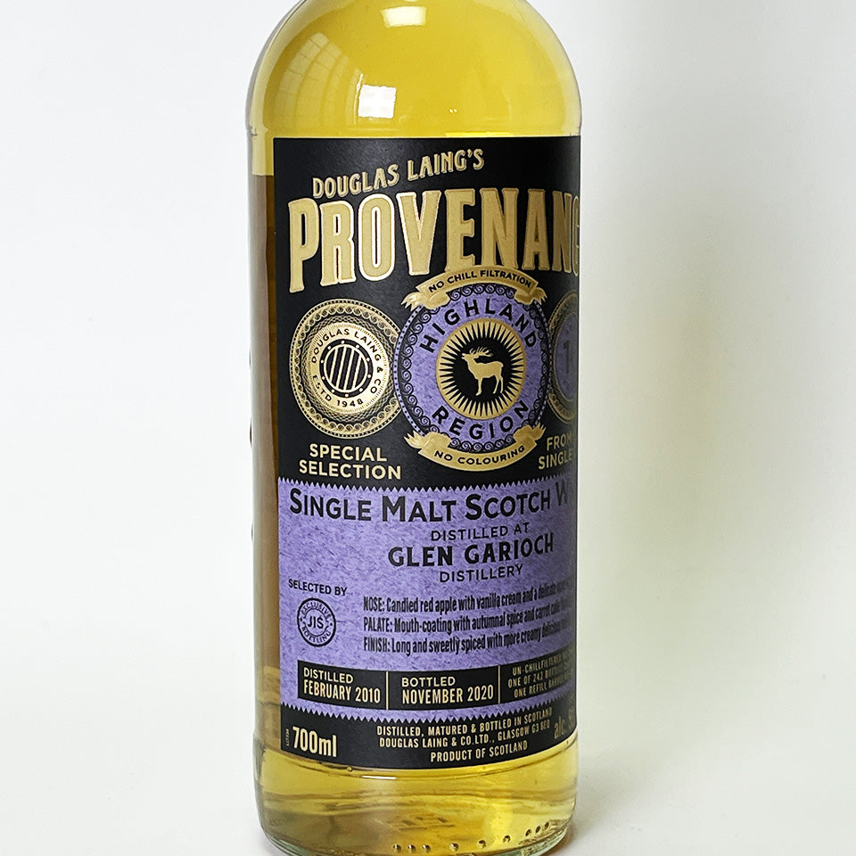 The popular "Provenance" series, sold by major bottler Douglas Laing, offers a wide range of reasonably priced items, all bottled in single casks. Glen Garie Distillery, founded in 1794, is one of Scotland's oldest surviving distilleries. Since becoming a subsidiary of Suntory, it has been producing elegant, refined, non-peated whiskeys. This product is a single cask distilled in 2010 and aged for 10 years. It is non-chilled and non-colored.