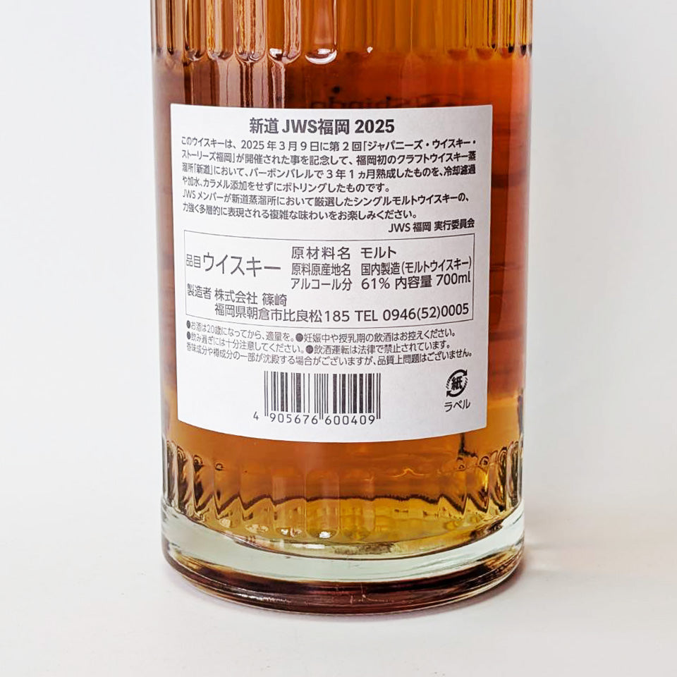 This single cask whiskey was bottled for "JWS Fukuoka 2025" (Japanese Whisky Stories 2025), a Japanese whiskey event hosted by bartenders from Fukuoka and Saga prefectures. It is aged for three years in bourbon barrels.