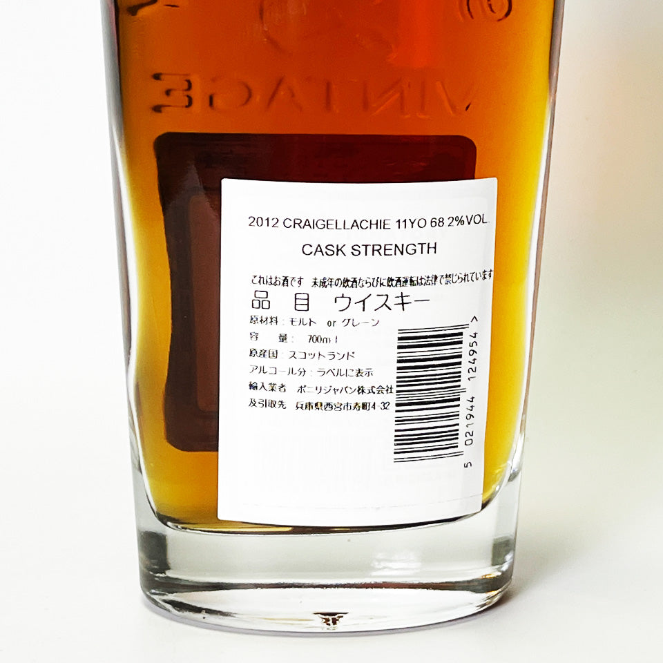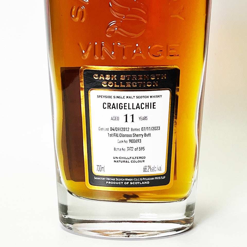 This product is part of the "Cask Strength Collection," a single malt whisky bottled directly from the casks in which it was aged, without adding water. It is made from malt from Craigellachie Distillery in Speyside, distilled in 2012, and aged for 11 years in first-fill sherry casks (butts). It is non-colored and non-chill-filtered.
