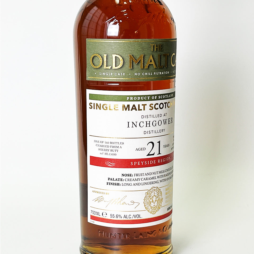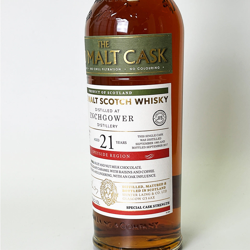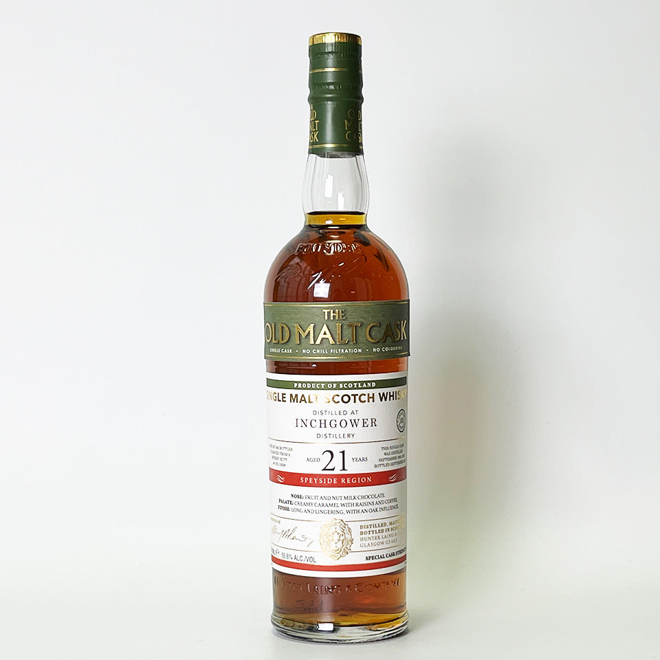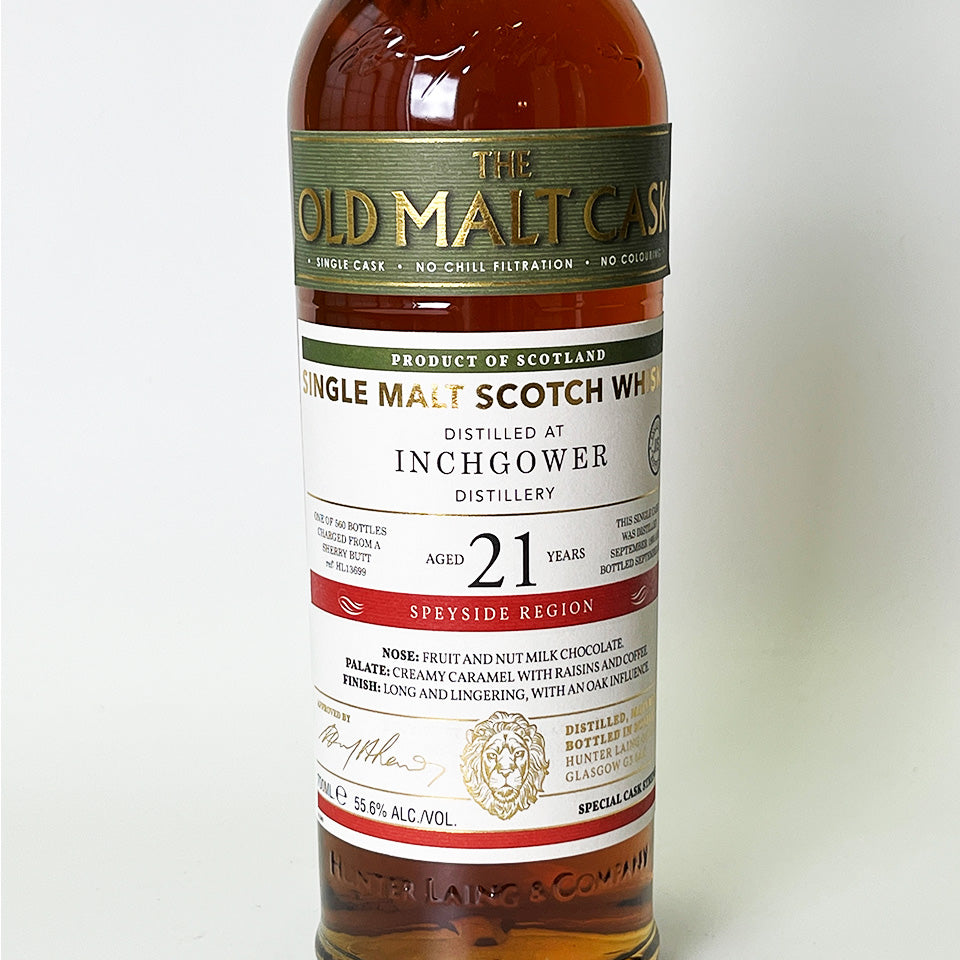 This product is part of the highly popular flagship brand, the Old Malt Cask (OMC) series, and is a single cask whisky made using malts from Inchgower Distillery (owned by Diageo), which was founded in 1871 in Speyside. The malts were distilled in 1995 and aged for 21 years in sherry casks (butts). Since much of the malts from Inchgower are used for blending, single malt releases are extremely rare and valuable. It is non-chilled and non-colored.
