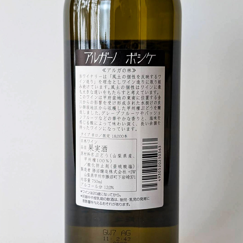 勝沼醸造 アルガーノ ボシケ 2016(白)