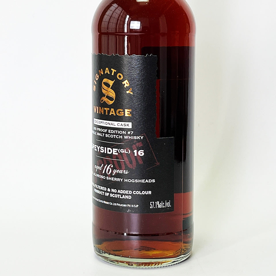 Signature Vintage 100 Proof #7. This collection features exceptional casks carefully selected from malts from undisclosed distilleries in the Speyside region, bottled at British 100 Proof (57.1% Alc.).