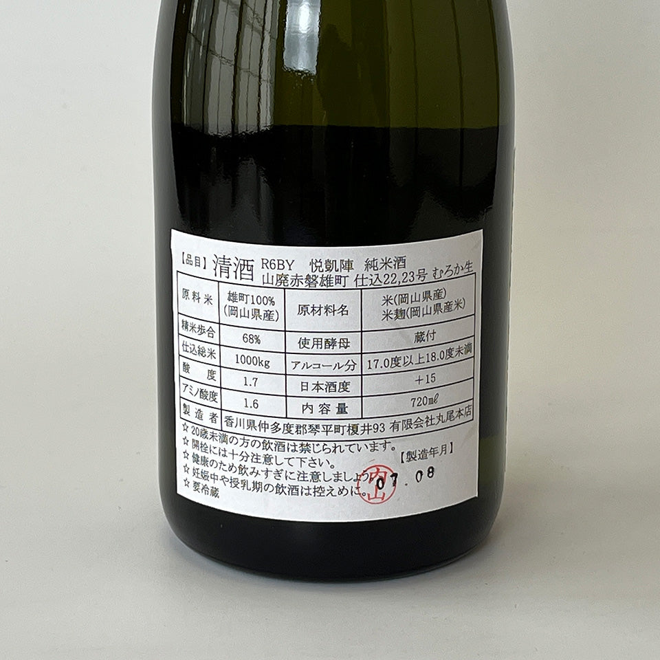 悦凱陣(よろこびがいじん) 純米吟醸 無濾過生 ブルーボトル(令和6醸造年度)