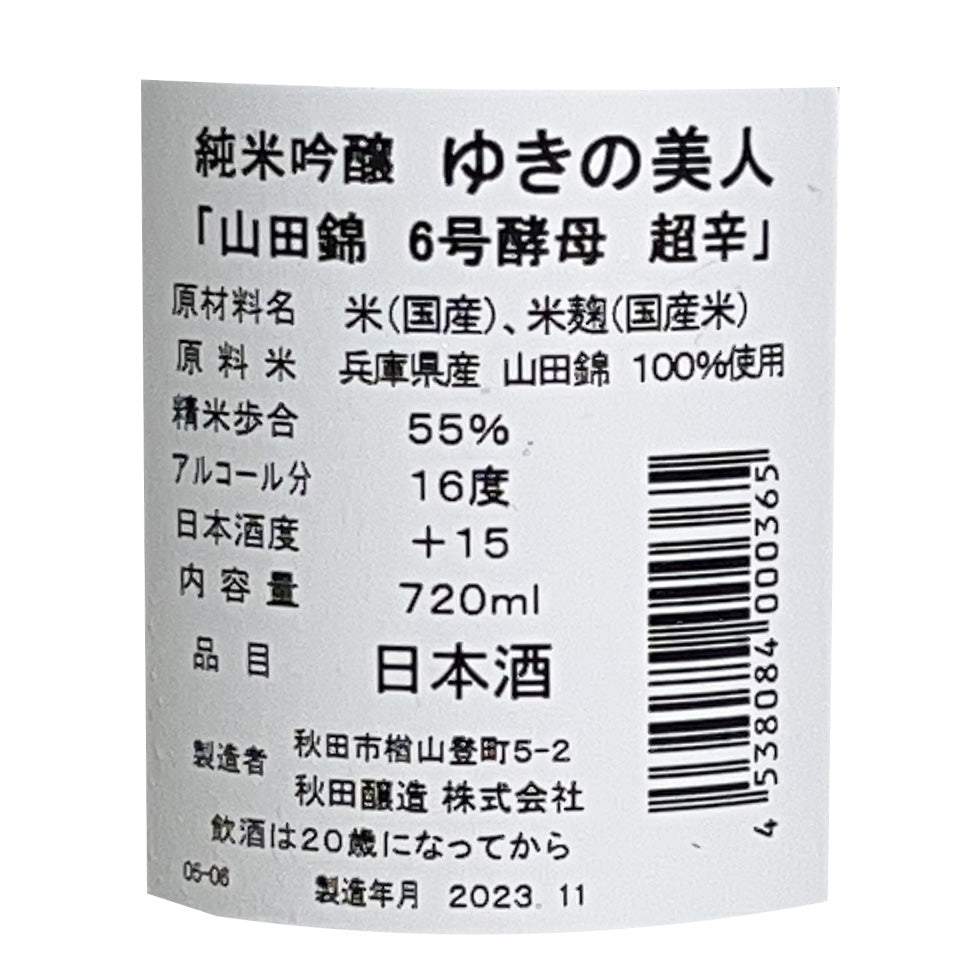 Yukino Bijin Junmai Ginjo Yamadanishiki No. 6 Yeast Extra Spicy