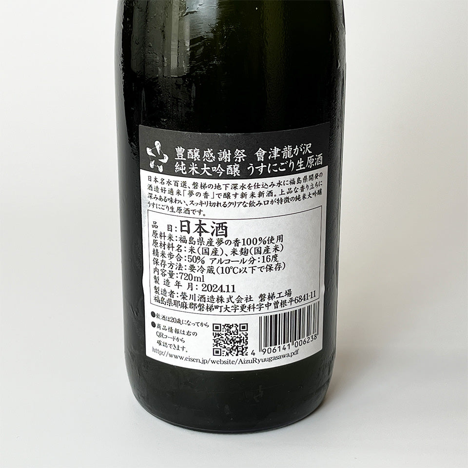 會津龍が沢(あいづりゅうがさわ) 純米大吟醸 ヌーヴォー うすにごり 生原酒 豊穣感謝祭 新酒 (令和6醸造年度)