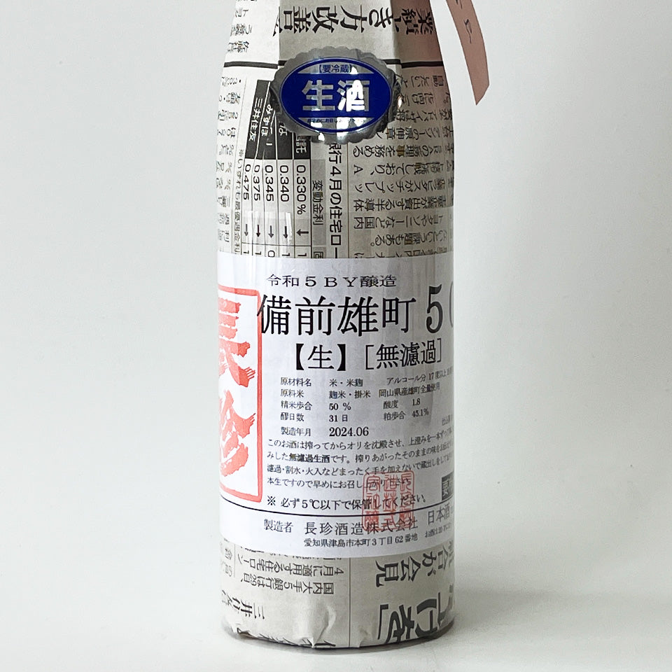 長珍 純米吟醸 備前雄町50 無濾過生原酒 - 自社氷温熟成 R5BY -
