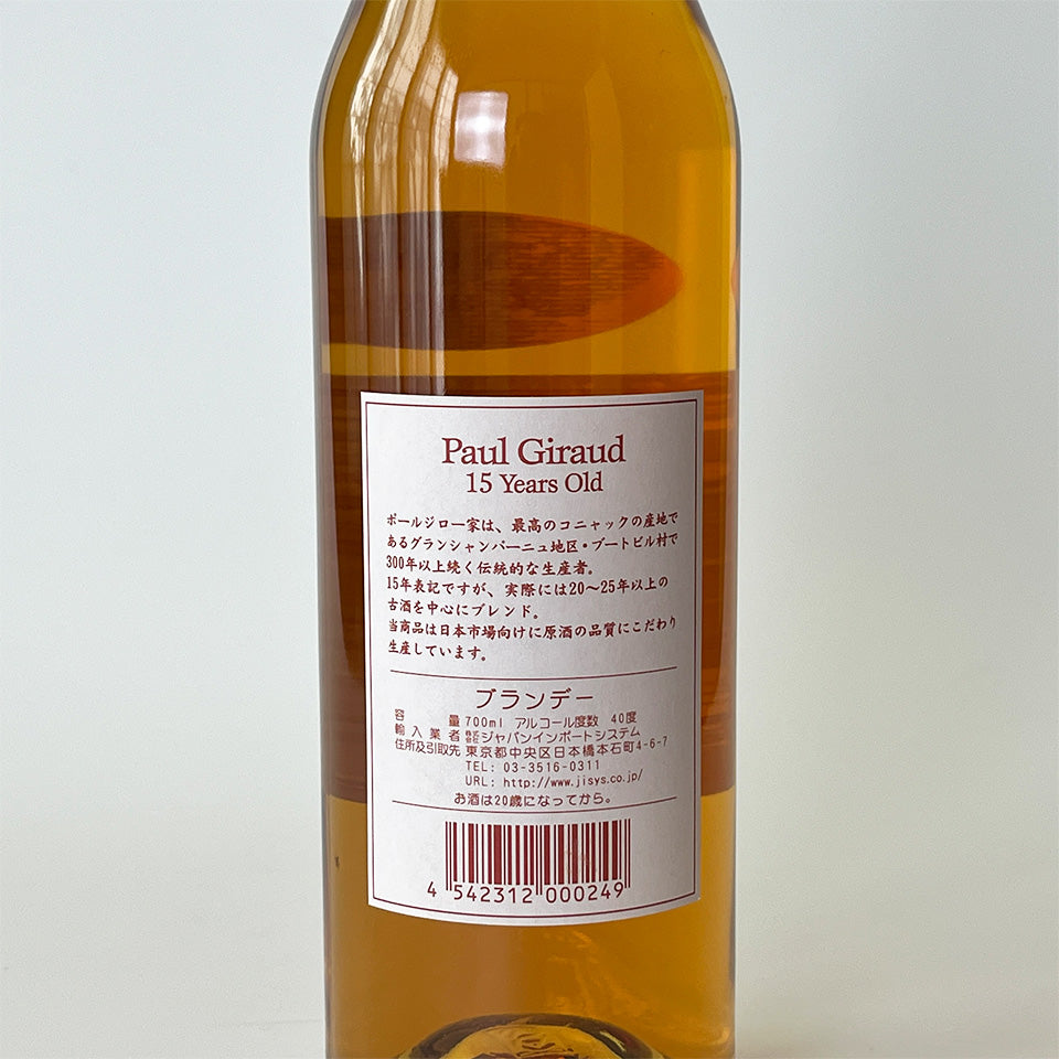 ブランデー_コニャック/PAUL GIRAUD 15 years old (ポールジロー 15年)【正規輸入品】