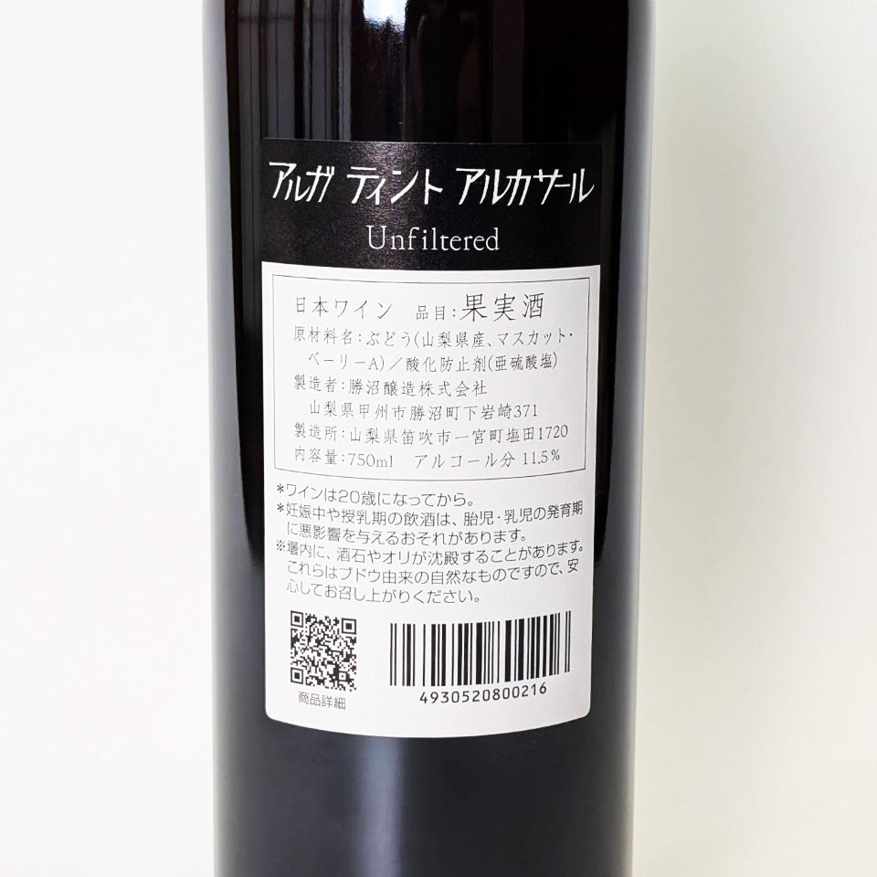 勝沼醸造 アルガ ティント アルカサール 2022 Unfiltered(赤)