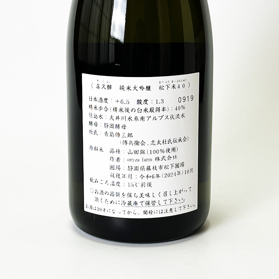 喜久酔(きくよい) 純米大吟醸 藤枝山田錦 40(令和6醸造年度)