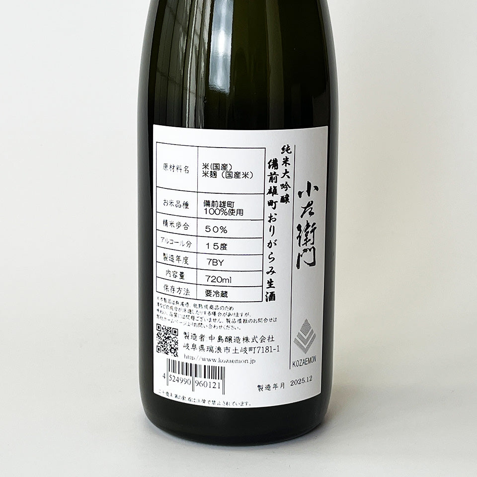 小左衛門(こざえもん)純米大吟醸 備前雄町 おりがらみ 生(令和7醸造年度)
