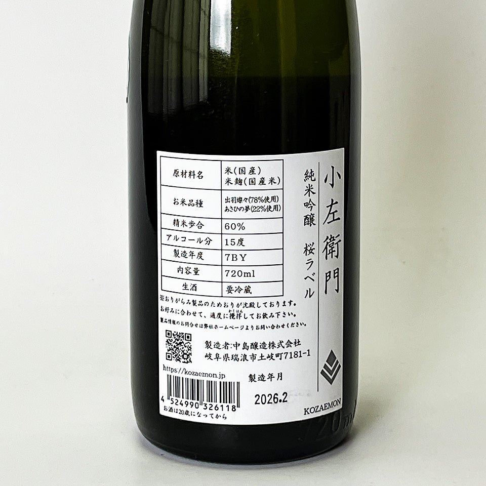 小左衛門(こざえもん) 純米吟醸 桜ラベル 生(令和7醸造年度)