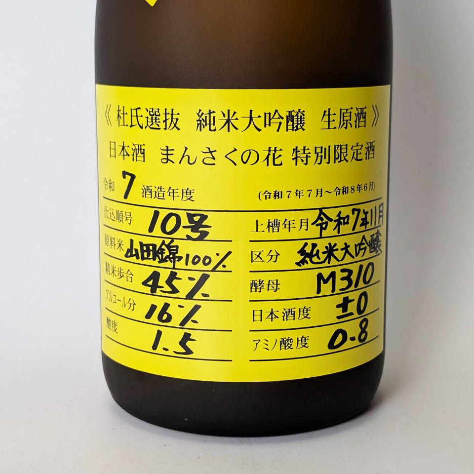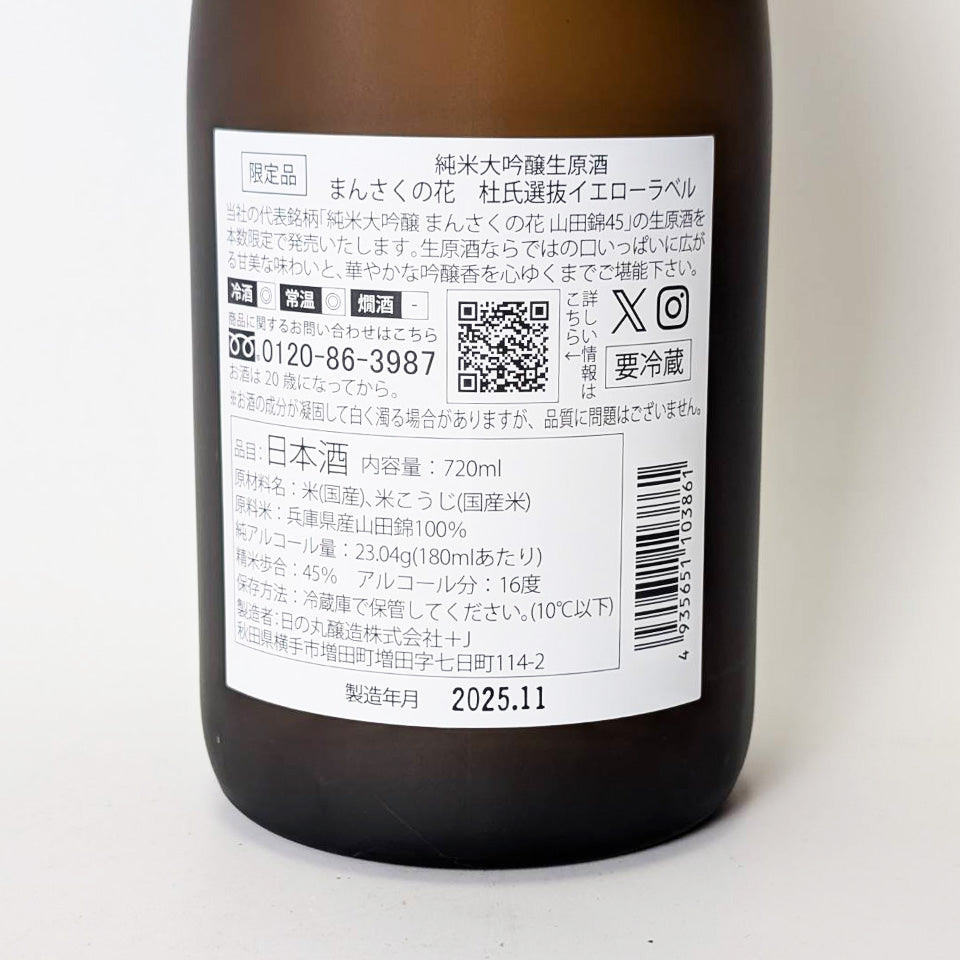 まんさくの花 純米大吟醸 山田錦45 生原酒 杜氏選抜 イエローラベル(令和7醸造年度)