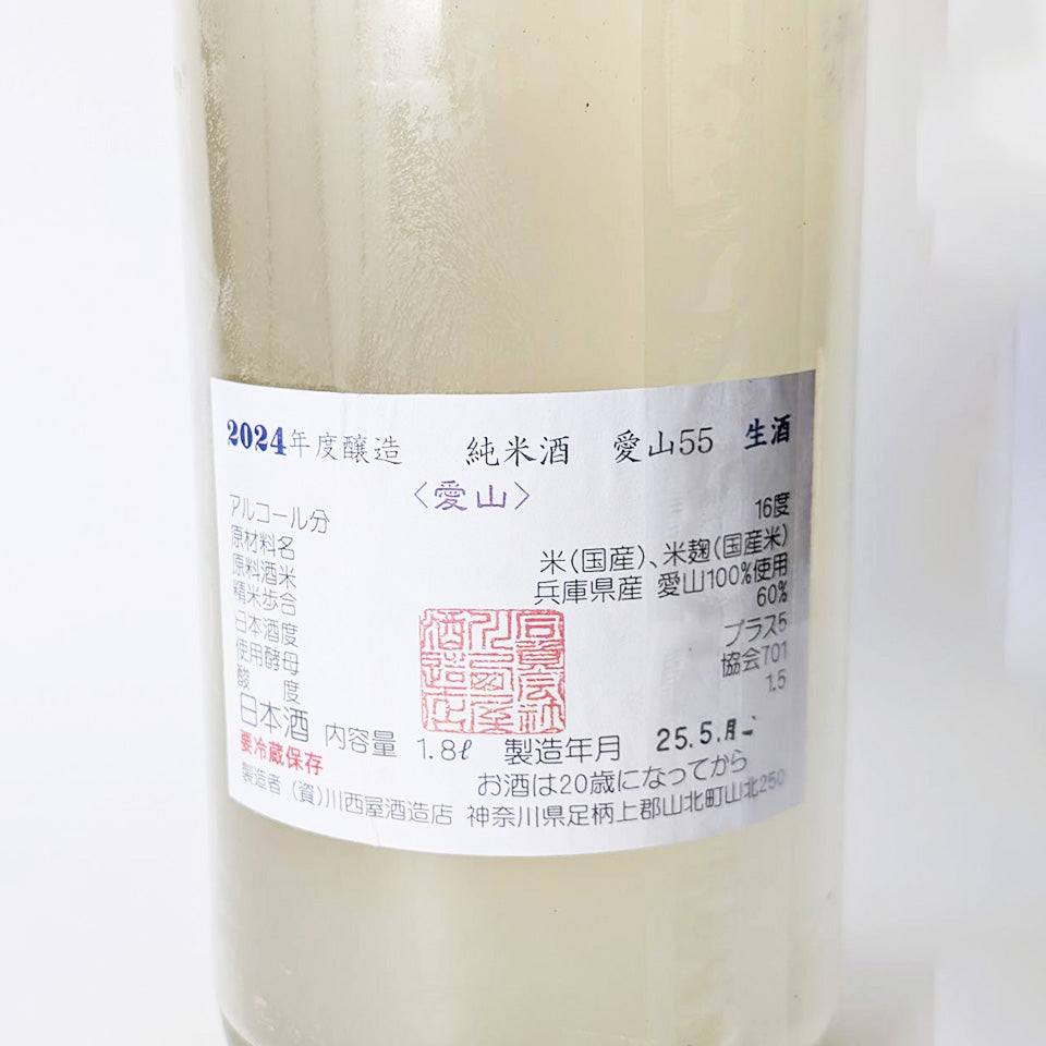 特定名称等:純米/ALC(%):16.0/主原料:愛山/精米歩合(%):60/酵母:協会701号 /日本酒度:5.0/酸度:1.5/アミノ酸度:/醸造年度:2024