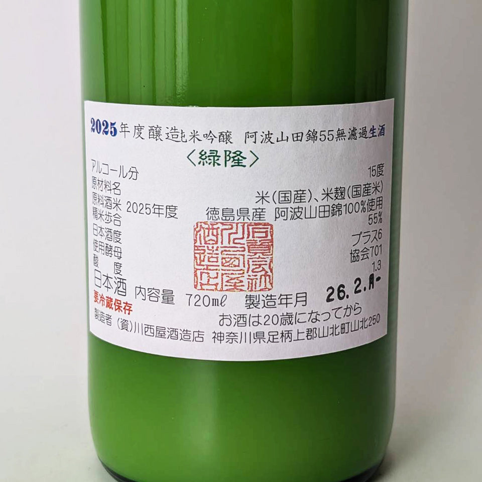 隆(りゅう)純米吟醸 阿波山田錦55 うすにごり 生(令和7醸造年度)