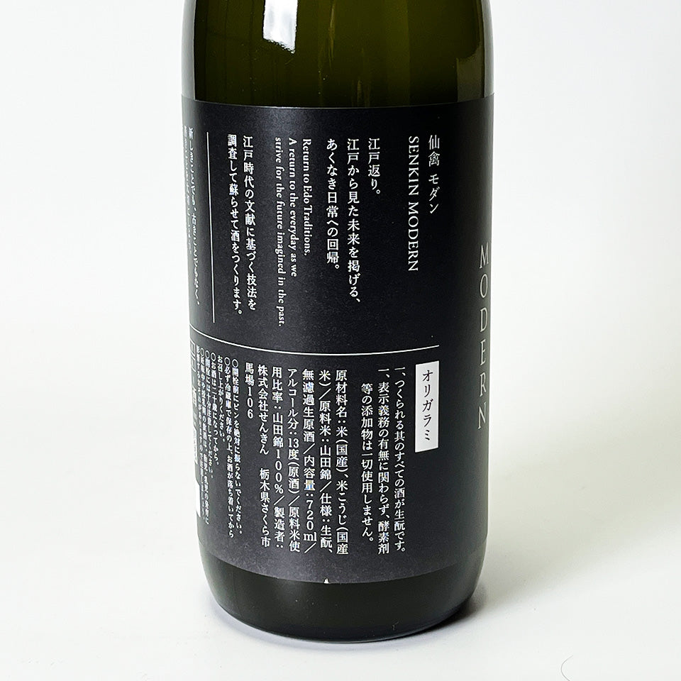 コンセプトは「江戸返り、江戸から見た未来を掲げる、あくなき日常への回帰」。栃木県さくら市産山田錦を用いた、生酛づくりの原酒。この「モダン_弐式」は、同じ造りで4種類が順次発売される中の、おりがらみバージョンとなります。(零式=生酒、壱式=火入れ、弐式=おりがらみ、参式=発泡(生)原酒)