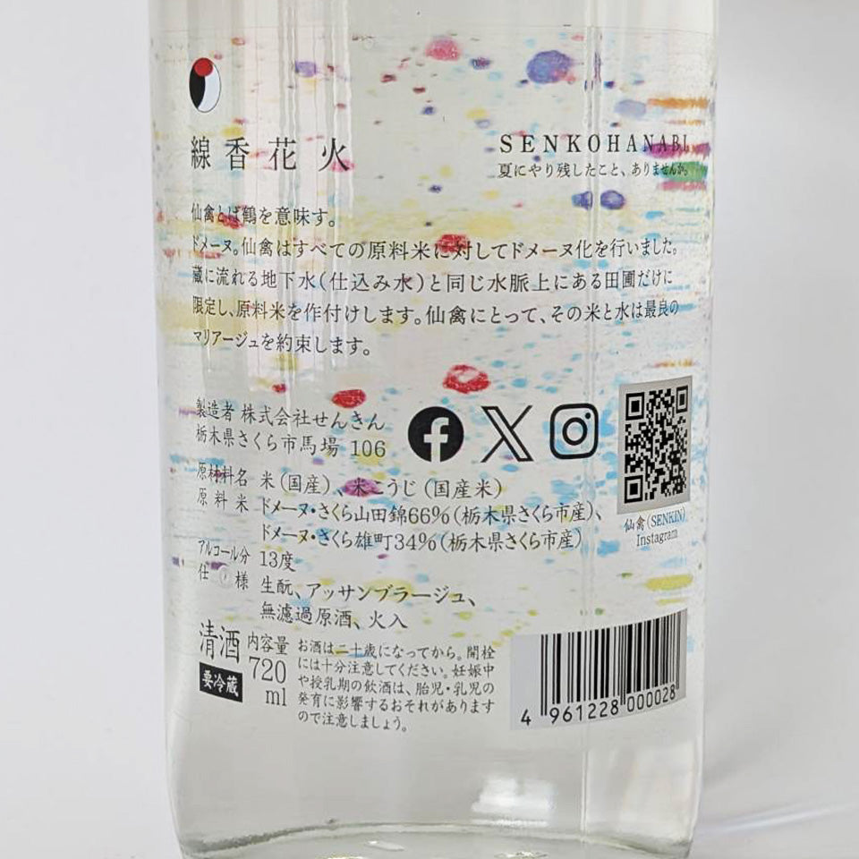 仙禽(せんきん)線香花火 2025 無濾過 原酒 火入れ(令和6醸造年度)