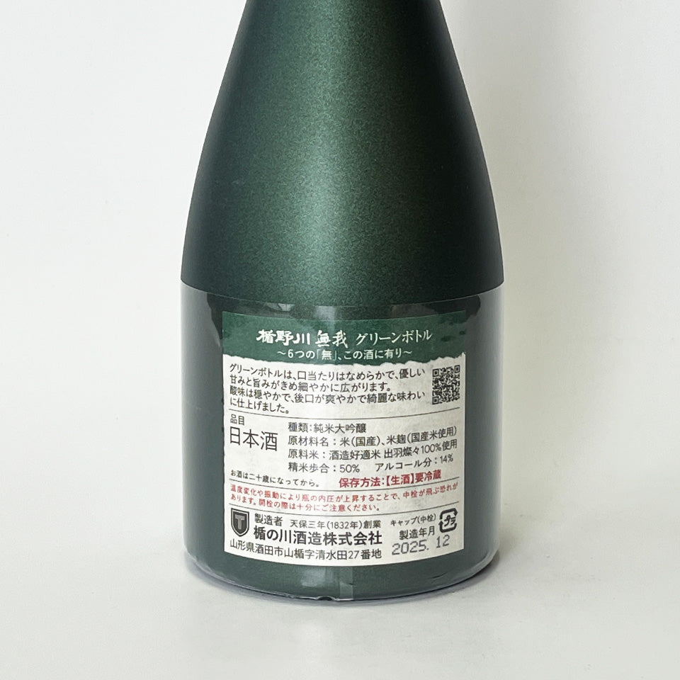 楯野川(たてのがわ) 無我 グリーンボトル 純米大吟醸 無濾過 生原酒(令和7醸造年度)