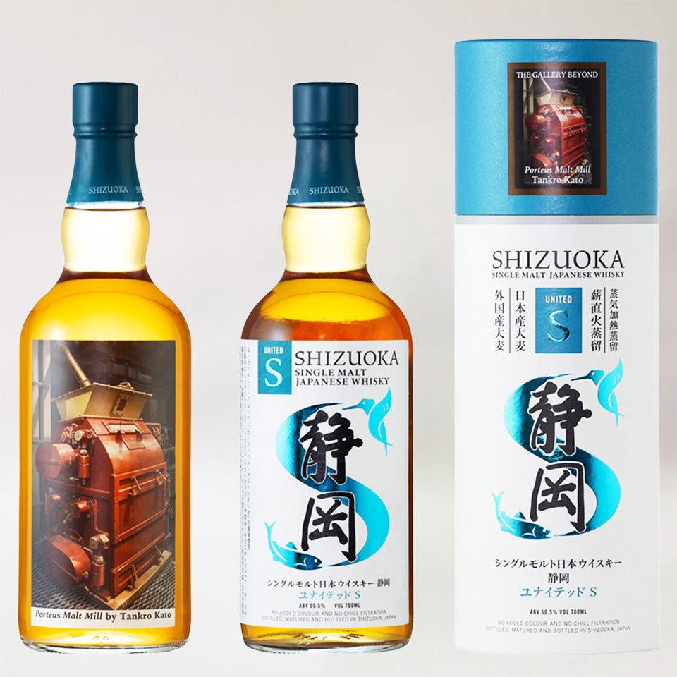この「ユナイテッドS _ザ・ギャラリー・ビヨンド_ポーティアス・モルトミル」は、静岡蒸留所のシングル・モルトを詰めたボトルの裏ラベルにアート作品をあしらった新シリーズ「ザ・ギャラリー・ビヨンド」の第1弾。静岡が誇るプラモデルメーカー「ハセガワ」のボックスアートを数多く手がけるイラストレーター/加藤単駆郎氏により、静岡蒸溜所で活躍しているスコットランド/ポーティアス製の麦芽粉砕機(1989年製造モルトミル)が精緻に描写されています。